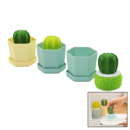 BAYSA-1554 ( KAKTÜS MODEL SAPLI ) ( SERT & RENKLİ PLASTİK TEL ) BULAŞIK FIRÇASI ( RENKLİ PLASTİK TABAKLI HAZNE )*150