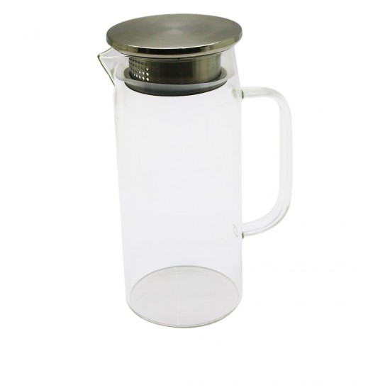 CLKN-1952 ( 1.2LT & YUVARLAK ) CAM SÜRAHİ & SÜZGEÇLİ METAL KAPAK ( TERMİSİL & ISIYA DAYANAKLI ) (BOROSİLİKAT)*24