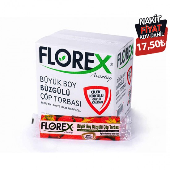 FLOREX-502 ( ÇİLEK KOKULU ) ( BÜZGÜLÜ ) ( BÜYÜK ) ( 10PCS ) 65X70CM ÇÖP TORBASI*25=K