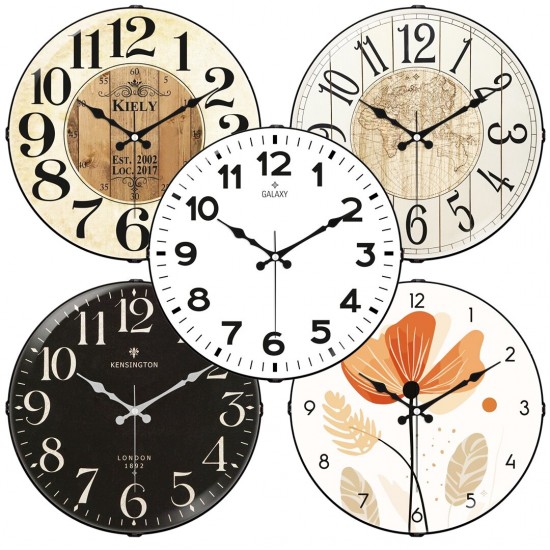 GALAXY D-1958-KRS ( PLASTİK BOMBELİ ) ( 25CM ) DUVAR SAATİ ( MİX DESEN )*20=K