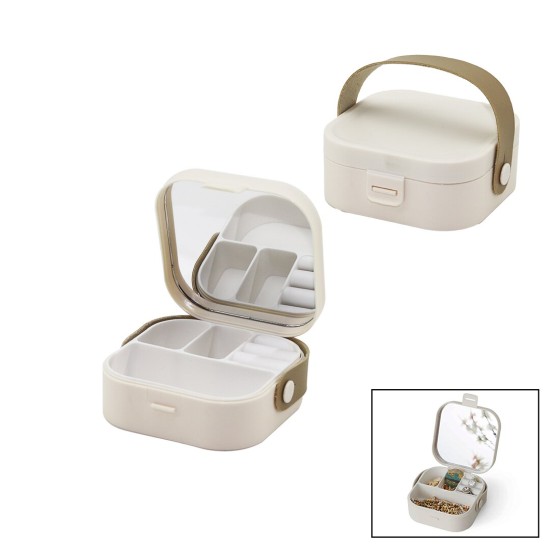 HOUSE BY HOUSE UR-3464 ( ÇANTA BOY ) ( 9X9CM & Y:3.7CM ) AYNALI MAKYAJ & TAKI ORGANİZER ( 4BÖLME & TAŞIMA KULP )*48