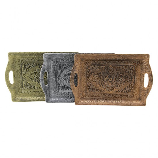 İBİCO ( DİKDÖRTGEN ) ( ESKİTME YALDIZLI ) PLASTİK ( ANTİK TEPSİ ) KULPLU ( SARI & GÜMÜŞ & BAKIR ) ( 29X38.5CM )*40
