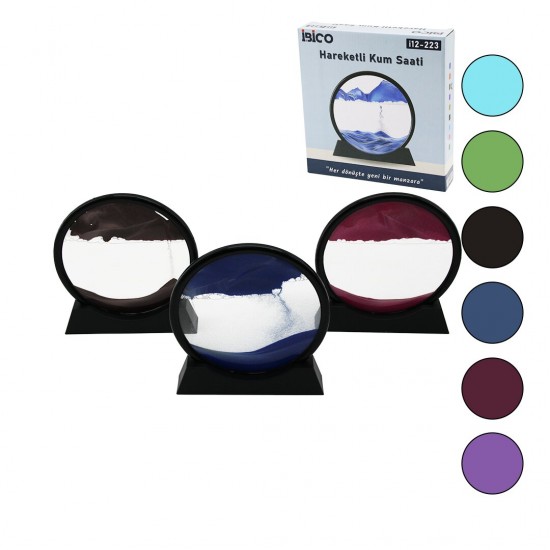 İBİCO İ12-223 ( 7" & 17.5CM ) ( RENKLİ SULU CAM ) KUM SAATİ HAREKETLİ ( AYNA MODELİ )*36