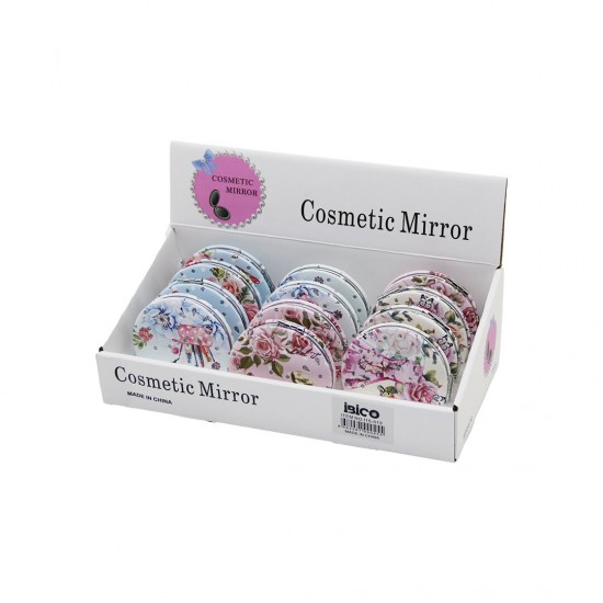İBİCO İ15-013 (GÜL DESEN & SİMLİ ) (YUVARLAK) (CEP & ÇANTA) MAKYAJ AYNASI ( NORMAL & BÜYÜTEÇLİ )*12X40