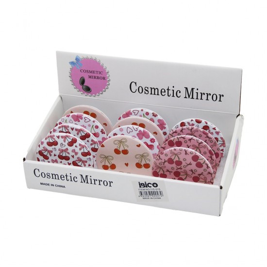 İBİCO İ15-015 ( KİRAZ DESEN ) ( YUVARLAK ) (CEP & ÇANTA) MAKYAJ AYNASI ( ÇİFT TARAFLI = NORMAL )*12X40