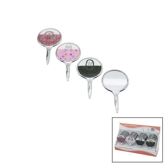 İBİCO İ15-037 ( YUVARLAK ) ( ÇANTA DESENLİ ) ( SAPLI ) ( CEP & ÇANTA ) MAKYAJ AYNASI ( TEK TARAFLI )*24X16