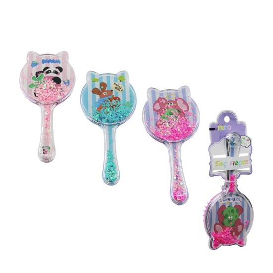 İBİCO İ15-047 (KEDİ MODEL & ŞEFFAF MİKA SAPLI) ÇOCUK SAÇ FIRÇASI=(SİLİKON) & TARAK (ŞEFFAF SAP=HAYVAN RESİM & RENKLİ YILDIZLAR)*12X20
