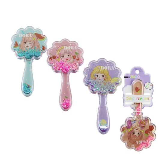 İBİCO İ15-048 (ÇİÇEK MODEL & ŞEFFAF MİKA SAP) ÇOCUK SAÇ FIRÇASI=(SİLİKON) TARAK (ŞEFFAF SAP=DORA GİRL& RENKLİ YILDIZLAR)*12X20