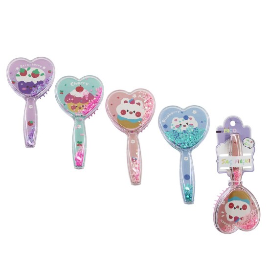 İBİCO İ15-049 (KALP MODEL & ŞEFFAF MİKA SAPLI) ÇOCUK SAÇ FIRÇASI=(SİLİKON) & TARAK (ŞEFFAF SAP=HAYVAN RESİM & RENKLİ YILDIZLAR)*12X20