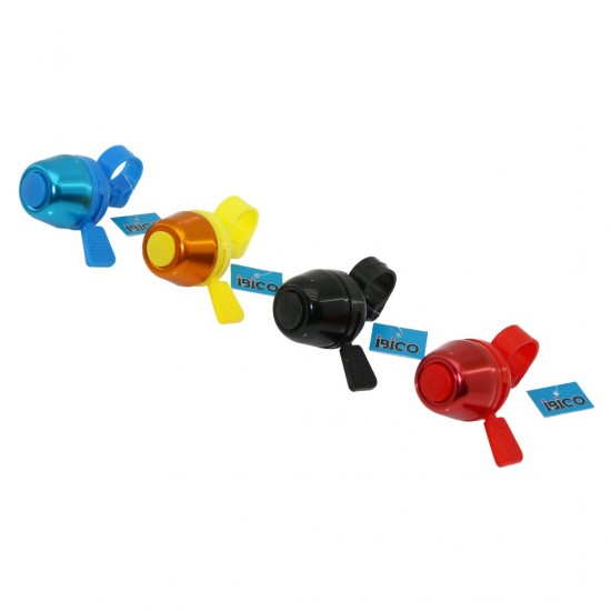 İBİCO İ18-019 ( CIRCIR ) ( DİK & YUVARLAK ) ( RENKLİ METAL KAPAK ) BİSİKLET ZİLİ ( RENKLİ PLASTİK TABAN & ZİL KOLU & TUTACAK )*20X12