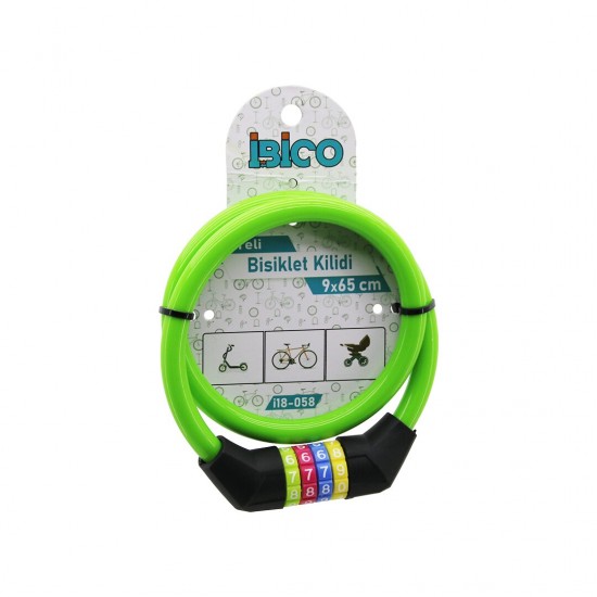 İBİCO İ18-058 ( ŞİFRELİ ) ( İNCE ) BİSİKLET KİLİT ( ÇELİK TEL ) ( YEŞİL RENKLİ KILIF ) ( 9MMX65CM )*200