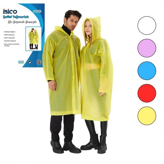 İBİCO İ18-077 ( ŞEFFAF & RENKLİ ) ( TEK KULLANIMLIK ) ( PARDESÜ ) YAĞMURLUK ( 65GR )*10X36