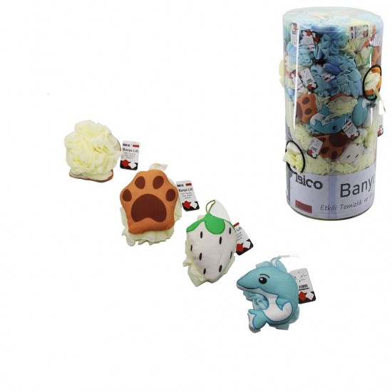 İBİCO İ21-091 ( BÜYÜK YUNUS & ÇİLEK & PATİ SÜNGERLİ ) ( RENKLİ TÜL ÖRGÜ ) BANYO LİFİ ( PVC STANDLI ) ( 30GR )*100X2