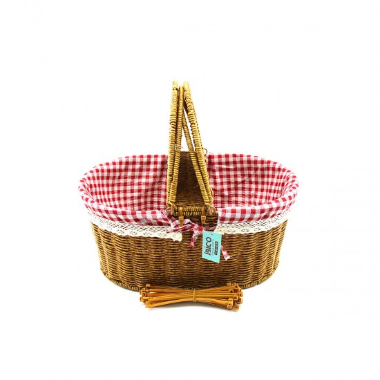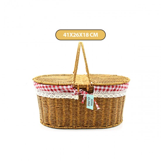 İBİCO İ22-335 ( OVAL ) ( HASIR ) ( PİKNİK SEPETİ ) ( DEKORATİF ÇOK AMAÇLI SEPET ) ( KOLA TAK KULP ) ( ÇİFT KAPAK ) ( 41X26X18CM )*12=K