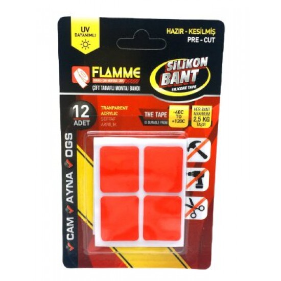 FLAMME SİLİKON ( 12PCS ) ÇİFT TARAFLI ( MONTAJ ) BANT*25X10