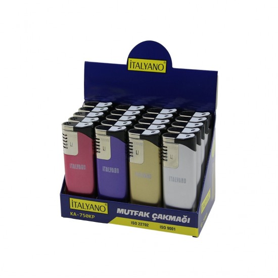 İTALYANO KA-750-KP ( METALİK RENKLER ) ( DEV BOY=3.7 X 11.2CM ) ( FENERLİ ) ( IZGARALI & RÜZGAR ) MUTFAK ÇAKMAK*20X16