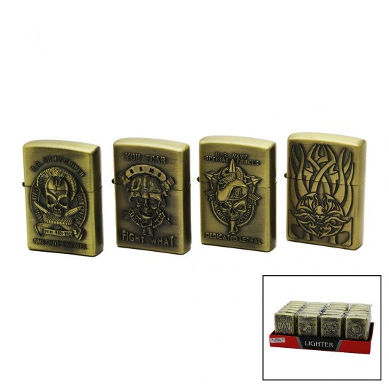 İBİCO HUAY LIGHTER 3-SDA-18-20 ( TAÇLI KURU KAFA & KANAT KABARTMALI ) ZİPPO ÇAKMAK ( MİX RENKLİ DESEN )*20X24