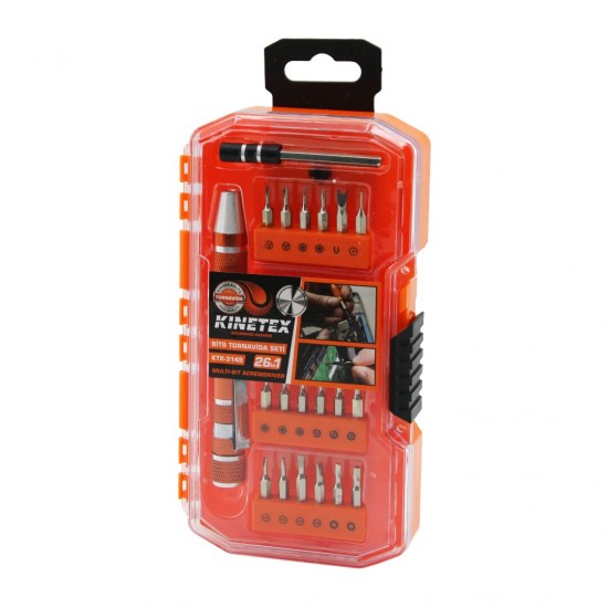 KINETEX KTX-3149 ( 26İN1 ) BİTS TORNAVİDA UÇ SETİ ( 24PCS UÇ + 1-KALEM MODEL T.VİDA SAPI + 1-UZATMA ADAPTÖRÜ )*10X10