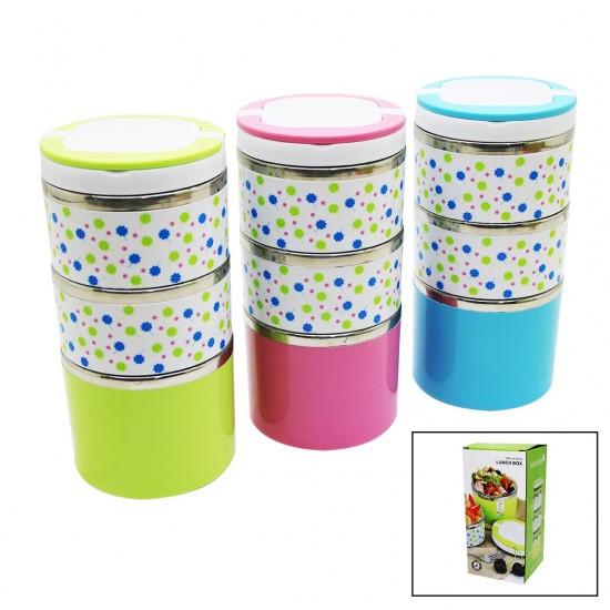 LUNCH BOX-10781 ( ÇİÇEKLİ ) ( 3LÜ ) SEFER TASI & SAKLAMA KABI RENKLİ 1.26LT*36