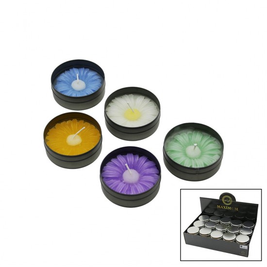 MAXİMUM MAX-5349 ( TENEKE KUTU=GÜMÜŞ ) ( PAPATYA MODELİ ) ( RENKLİ & KOKULU ) MUM*45X8