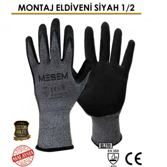MEŞEM SİYAH BENEKLİ MONTAJ ELDİVENİ 10 NO EL270*12X
