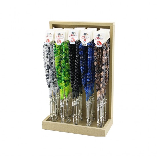 MEVA M-65 ( BÜYÜK & 33LÜ & METAL SİMGE İMAMELİ ) ( AKRİLİK ) CEP TESBİH ( AHŞAP STANDLI ) ( LASTİKLİ MİSİNA İPLİ )*60X10