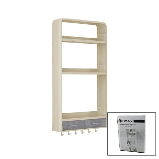 OMAŞ OM-0831 ( BEJ ) YAPIŞKANLI DUVAR ORGANİZERİ PLASTİK ( 3 RAF=14CM-19CM-30CM & 2 ÇEKMECE=40CM & 6 ASKI ) ( 19 PCARÇA )*6