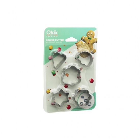 QLUX L-00156 ( 5PCS ) ( METAL ) KURABİYE KALIP ( KALP & YILDIZ & PAPATYA & AĞAÇ )*36