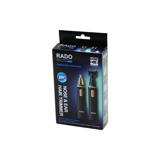 RADO RD-3138 (KARE GÖVDE & KAPAKLI) (2 BAŞLIK) (BURUN-KULAK-YANAK KIL TÜY ALMA& FAVORİ-ENSE ÇİZİM) MAKİNESİ (USB ŞARJLI)*100