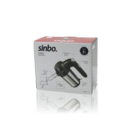 SİNBO SMX-2774 EL MİKSERİ ( 2İN1= KARIŞITMA & ÇIRPMA APARATI ) ( 5 KADEME HIZ AYARI )( PASLANMAZ ÇELİK GÖVDE ) 200W*8