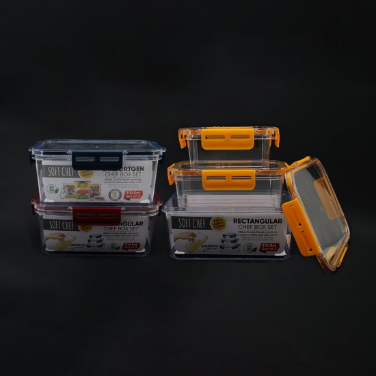 SOFTCHEF-00801 ( 3PCS ) ( DİKDÖRTGEN ) MİKA SAKLAMA KABI SETİ ( SİLİKON CONTALI KAPAK ) ( 375-900-1700ML)*12=K