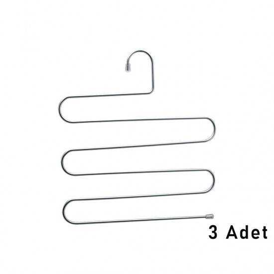 YAKUT-2686 ( 3PCS ) KROM AKILLI PANTOLON ASKI ( DOLAP İÇİ YER KAZANDIRAN PANTOLON & GİYSİ ASKISI )*20=K
