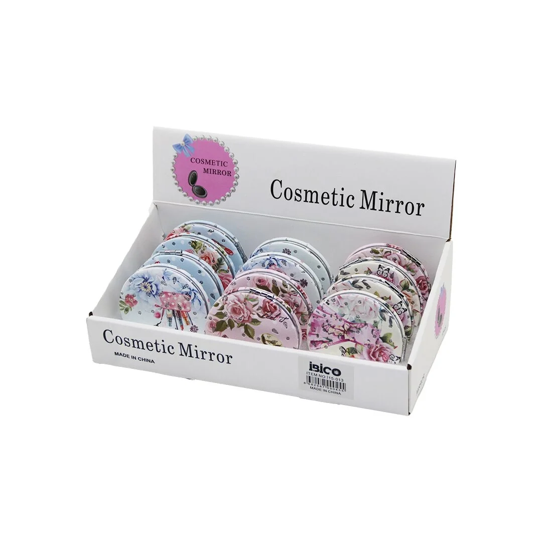 İbico İ15-013 (gül Desen & Simli ) (yuvarlak) (cep & Çanta) Makyaj Aynası ( Normal & Büyüteçli )*12x40