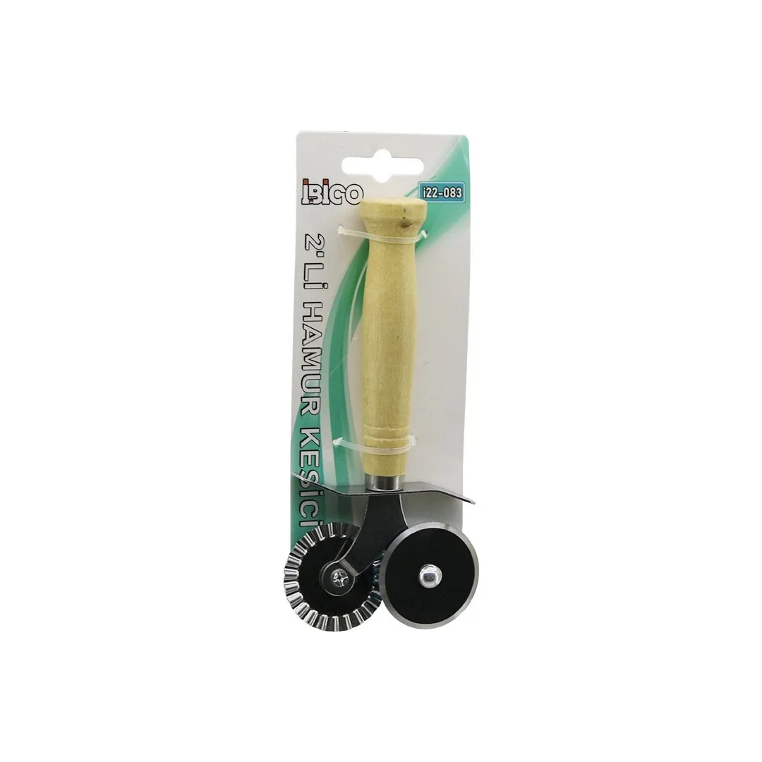 İbico İ22-083 ( Mini ) ( Çap: 3.5x2=7cm ) ( Çift Başlı ) ( Ahşap Saplı=10cm ) ( Metal ) Pizza & Hamur Kesici Rulet*12x20