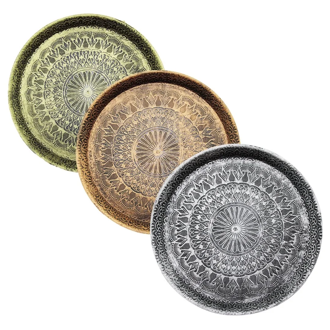 İbico ( Yuvarlak ) ( Eskitme Yaldızlı ) Plastik ( Antik Tepsi ) ( Sarı & Gümüş & Bakır )*50