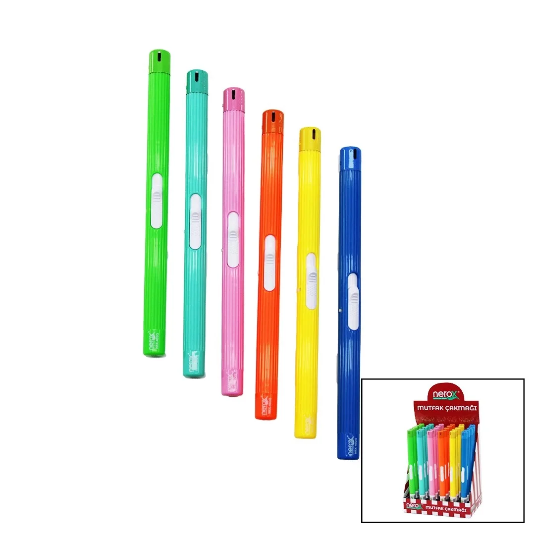 Nerox Nrx-402Q ( Renkli ) ( Kalem Modeli ) Mutfak Çakmak ( İtmeli Ateşleme )*30x6