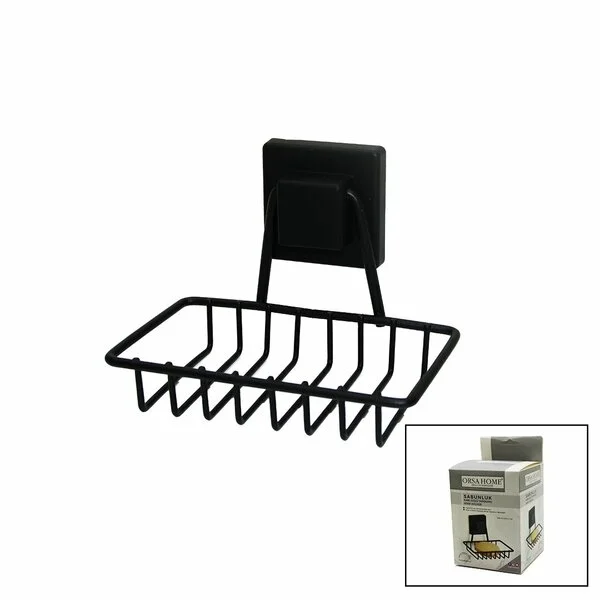 Orsa-905 ( Siyah & Metal ) Katı Sabunluk ( Kare Güçlü Yapışkanlı ) ( 11x12.5x11cm )*6