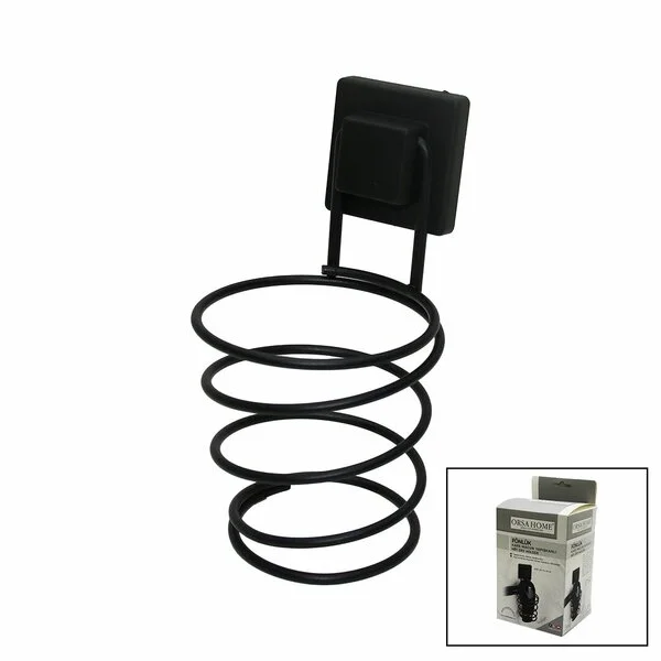 Orsa-915 ( Siyah & Metal ) Fönlük Fön Makine Askısı ( Kare Macun Yapışkanlı ) (10x11x15cm)*6