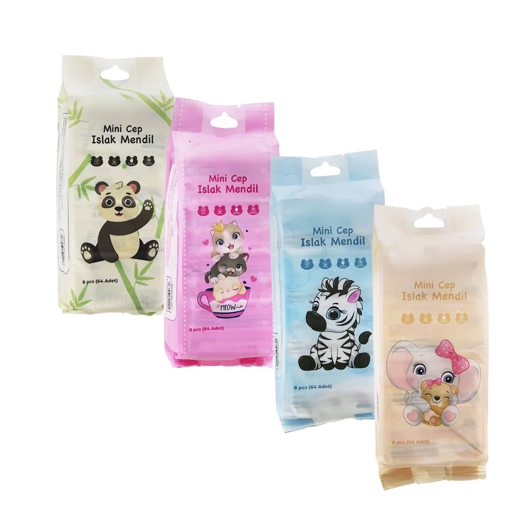 Pango Krd-7373 ( Mini ) Cep Islak Mendil ( Mix ) ( 14x15cm ) ( 8pcs X 8 Pkt=64pcs )*60=k