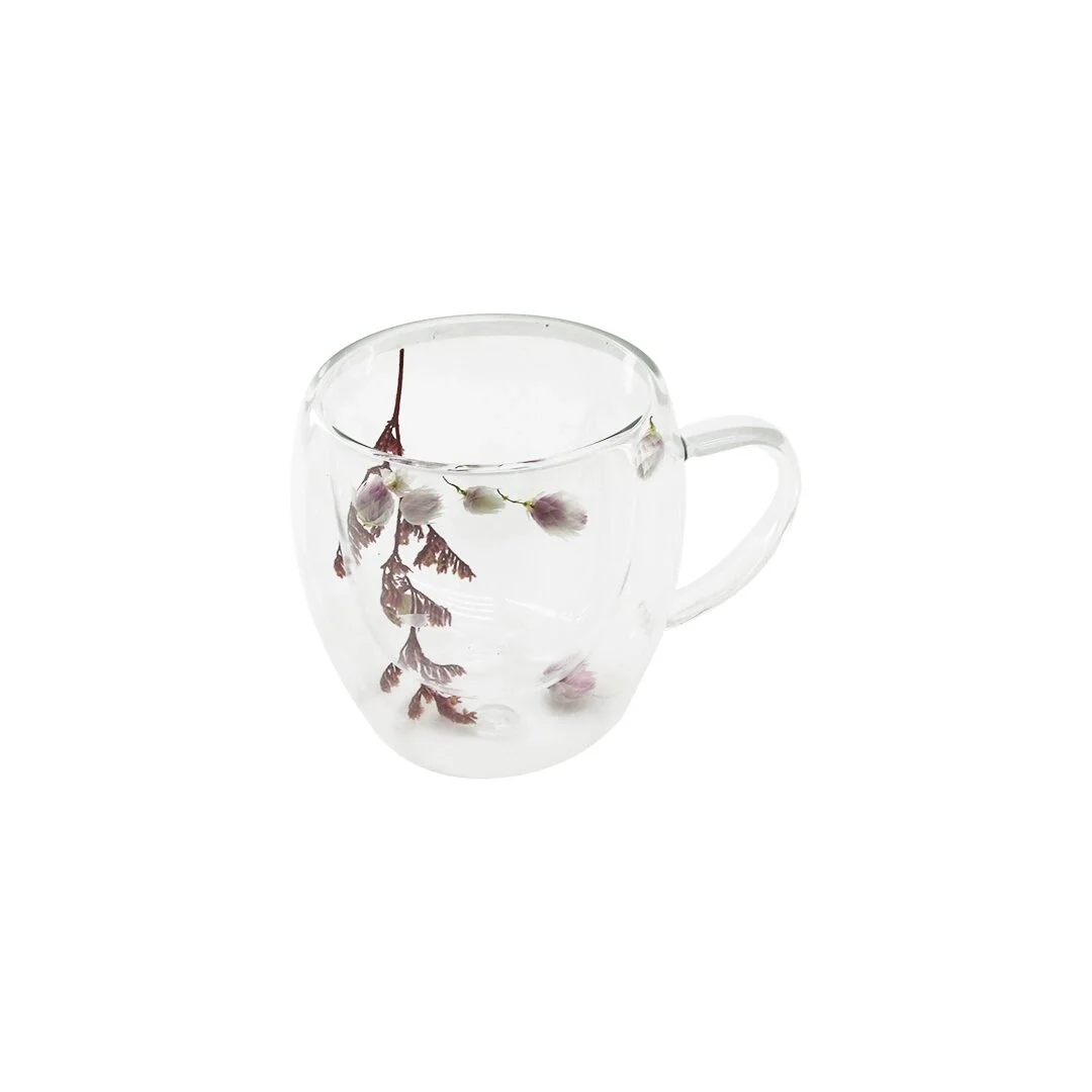Sdr-b1 ( 250ml & Kulplu ) ( Çift Cidarlı & Çiçekli ) Cam Bardak*100=k