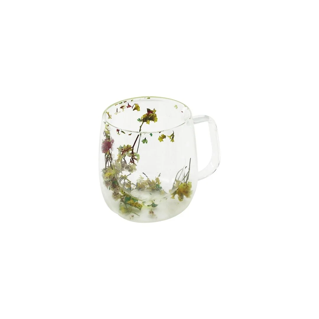 Sdr-b3 ( 250ml & Kulplu ) ( Çift Cidarlı & Çiçekli ) Cam Bardak*100=k