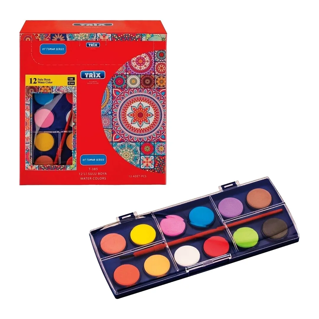 Trix Class T-385 ( 12pcs = 12 Renk & +1 Fırça ) Sulu Boya Kare 22mm*12x12